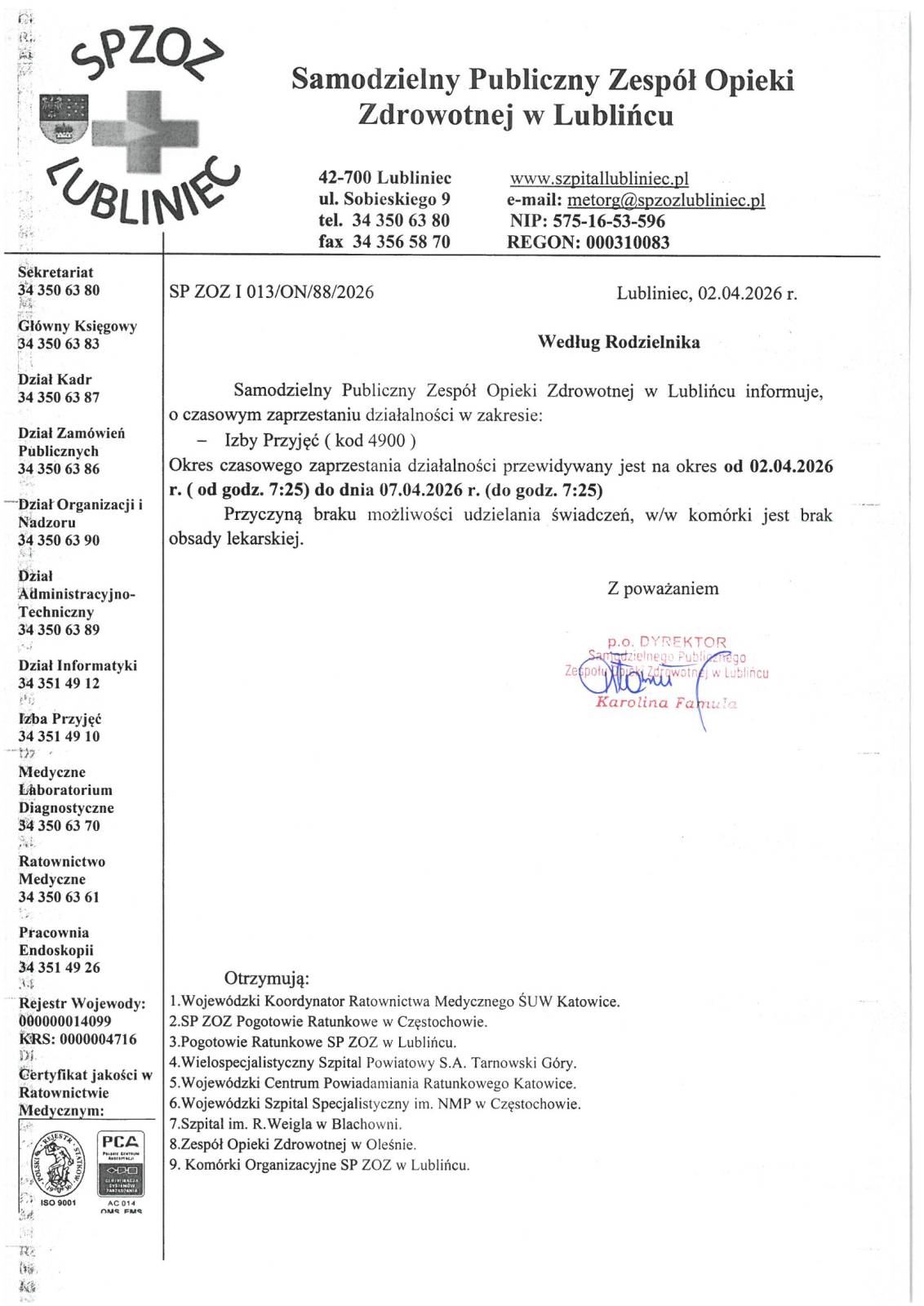 Korzystając ze strony szpitallubliniec.pl, akceptujesz nasze pliki cookie i zgadzasz się z naszą polityką prywatności, w tym polityką dotyczącą plików cookie. Przeczytaj politykę cookies.